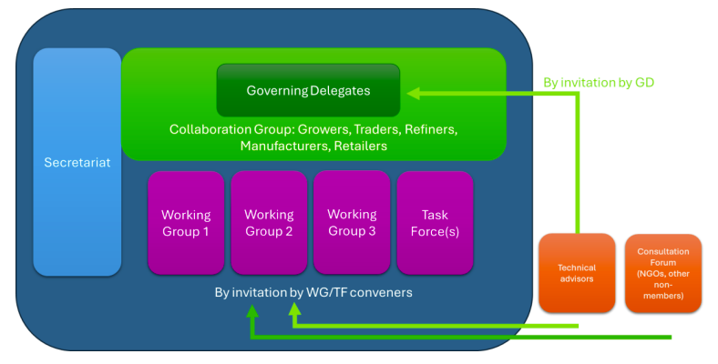 Collaboration Group: The POCG is made up of 30 companies from all stages of the palm oil supply chain including producers, refiners, traders, manufacturers, and retailers. The members / Collaboration Group is represented by the member-elected Governing Delegates (GD) that represent the POCG members for a two-year term.